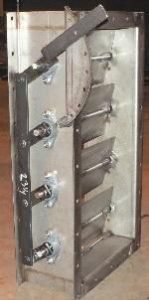 PARALLEL-BLADE DAMPERParallel blade dampers are built with flat or airfoil blades shaped to minimize flow restriction from the damper. Each blade rotates in the same direction providing pre- spun air entering the fan if mounted on an inlet box. These dampers have a design capability to 1100 deg. F. Parallel-blade dampers can be mounted on either the outlet flange or an inlet box of a fan. |