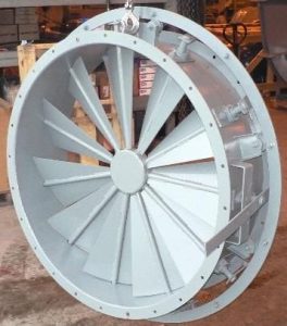 VARIABLE INLET VANES (VIV)VIVs are the most efficient damper. They provide long term savings in energy consumption by creating a controlled pre-swirl of air entering the fan wheel, thereby reducing the inlet velocity relative to the fan blades and thus the horsepower required to operate the fan. Variable Inlet Vanes used on industrial fans are external mount type, mounted on the inlet flange with center vane support and perimeter linkage. Design capability to 1000 deg. F. |